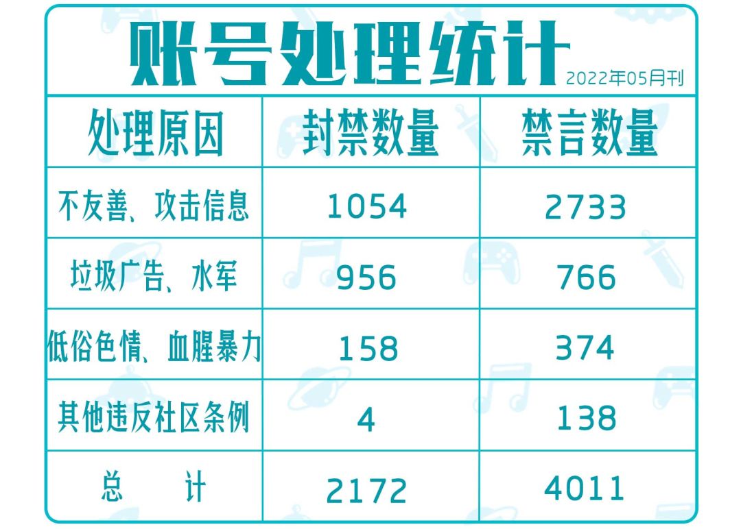 本月禁言用户数量为2172个,禁言用户数量为4011个。论坛的友好环境不仅需要社区管理团队来维护,更需要各位Tapper们携手共进。在5月份,TapTap社区管理团队集中清理了论坛中的人身攻击、粗口脏话等不文明词汇,并对发布此类不友善内容的用户做出集中处理。