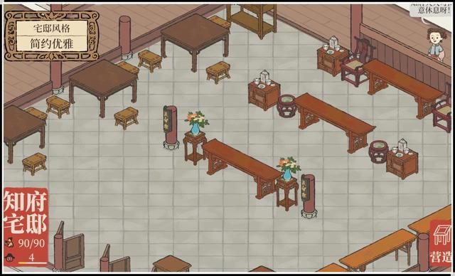 点宅邸左上角“宅邸风格”可以查看当前几个房间的风格:简约、严肃、优雅、粗犷、文艺,建造不同的家具可增加不同风格的数值。而知府宅邸达到二级可解锁方角柜、平头长案、牡丹花几,分别达到5级、10级、15级时解锁剩余三个房间。