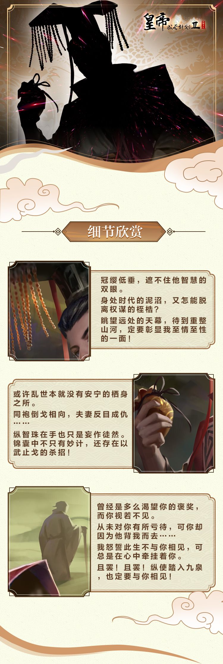 本次活动,提供给大家随心所欲发挥的空间,大家可以尽情把自己所希冀——本次春秋版本将会推出的名臣,回复在评论区吧~