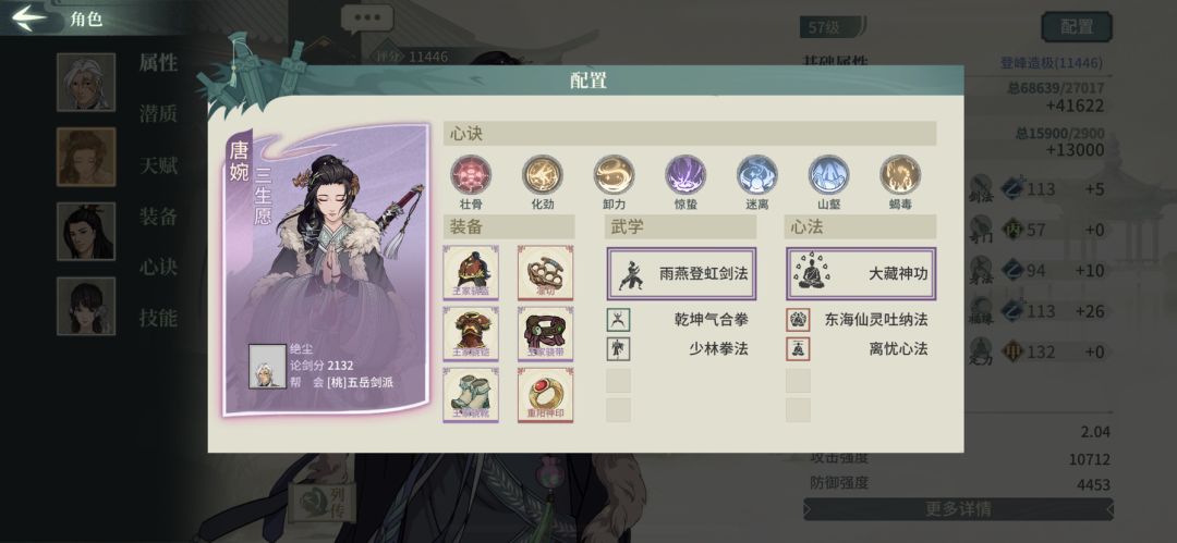 2、装备——东海太虚混搭(幻影太虚也可,有啥用啥),提供身法,主要洗悟性,减爆伤,减脱臼伤,抵抗,生命,防御等