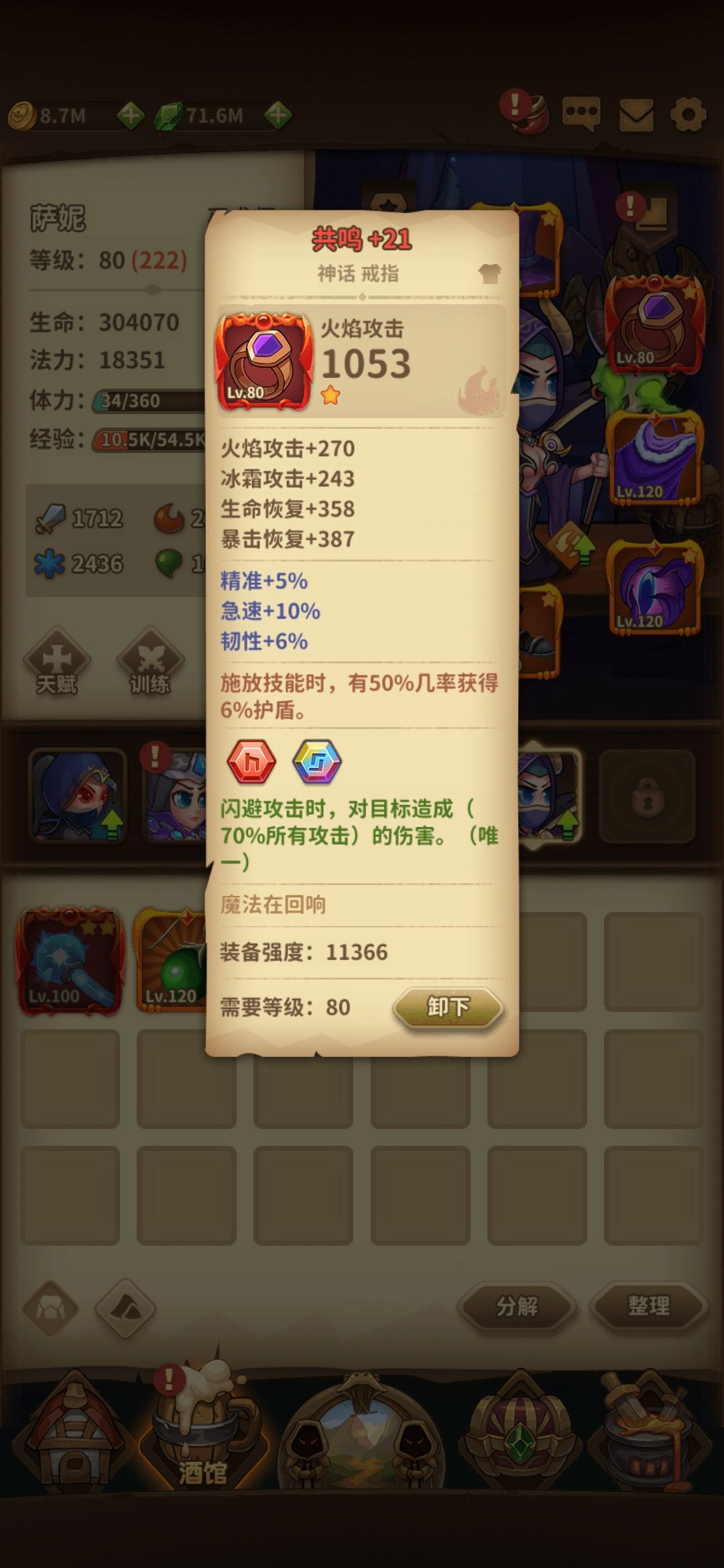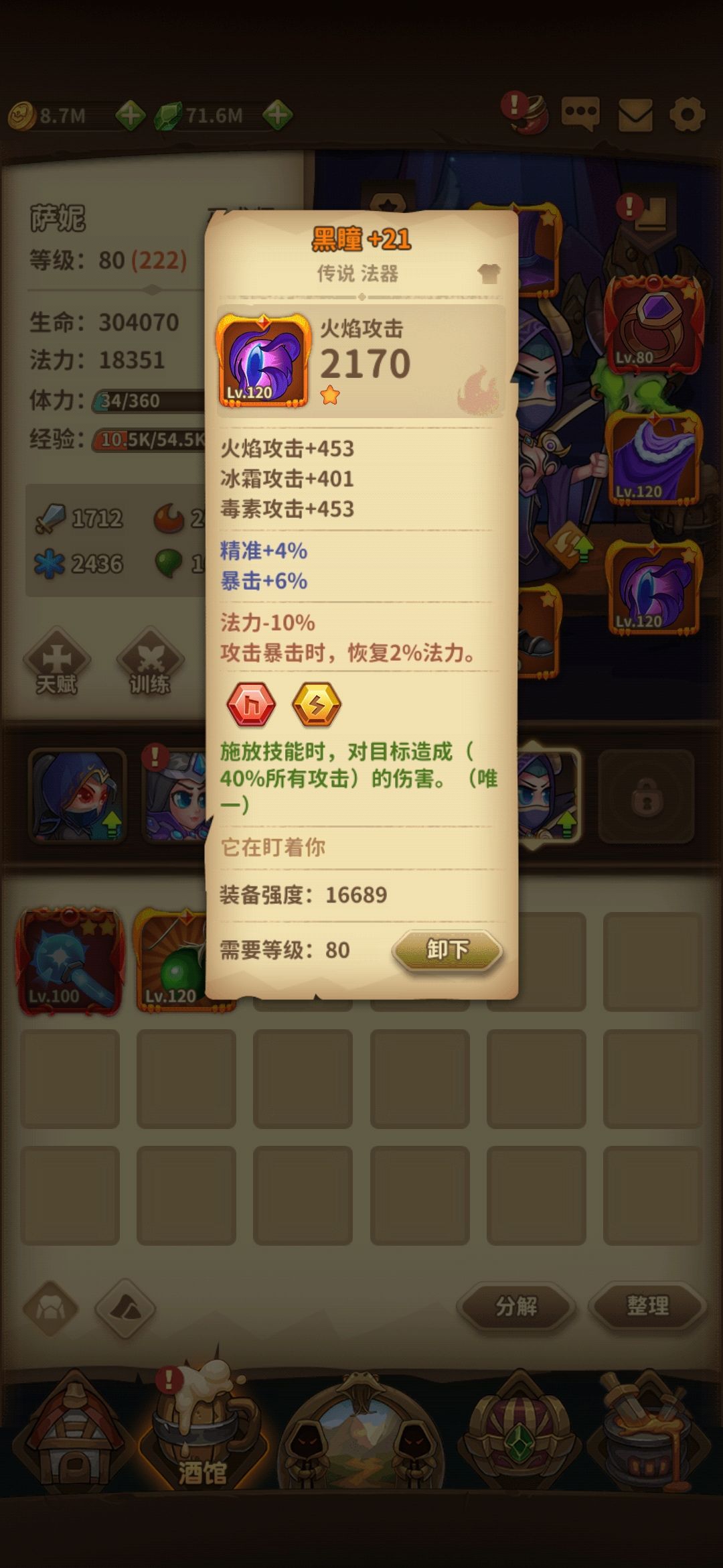6月4号入坑,总共用了100h,开局选了盗贼,开荒还算顺利,后来看论坛才知道审判好用,后悔已经晚了,考虑到已经肝了两天也就没有重开。80级以后星矢共鸣盗贼噩梦难度一路杀穿,直到卡在噩梦22,所以个人感觉盗贼还是挺好用的。看了论坛知道现版本t0是女巫,第五个坑位赶紧选了女巫,因为蹭了两天端午福利,资源不是很缺(离线收益根据推图进度计算,后悔端午奖励领早了),开宝箱抄作业800层前也就没遇到什么坎。