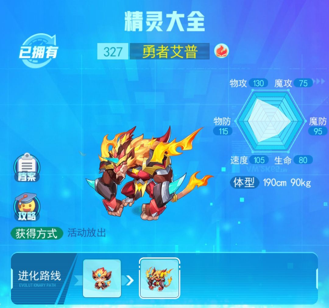 一如既往的600种族大关,物攻物防都是优秀点,都在一百左右的法防和速度也是不赖的,那就单从种族上来讲,这是一个定位接近于鹿神一样的精灵,区别就是艾普的生命值偏低了些,但是法防方面比鹿神要高出许多,这样一来努力值给在双防上,抗击打能力就要比鹿神好上一些了。
