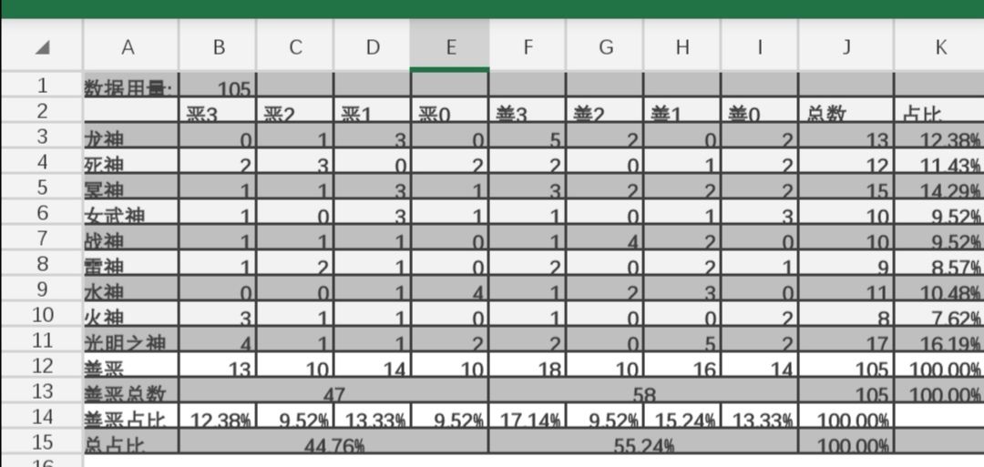 最近论坛里老是有人抱怨碎片合成的神话善恶被暗改,我闲来无事统计了一下。