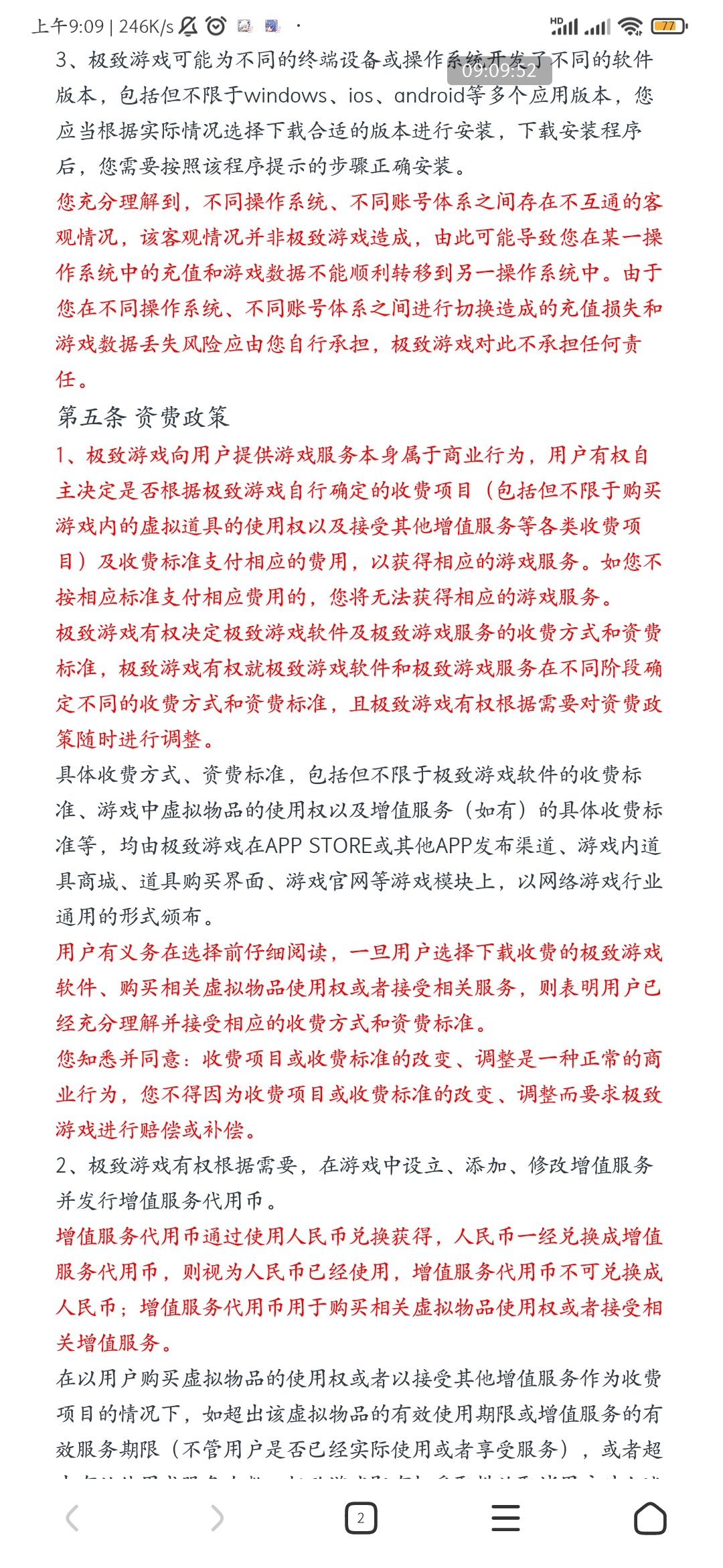 这是用户协议,虽然是霸王条款,但是个人对于退款还是不怎么看好。得到的小道消息(对于退款只能是极致VIP2支持(氪金1w以上))。没到那个档位不支持退款,只会替换充值内容。