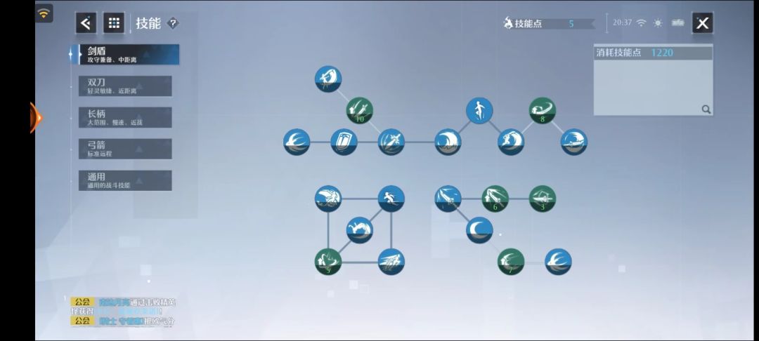 剑盾强化方向:重击与挑飞尤为重要,剑气攻击与一些依靠闪避按键使用的主动技能可以延缓加点。