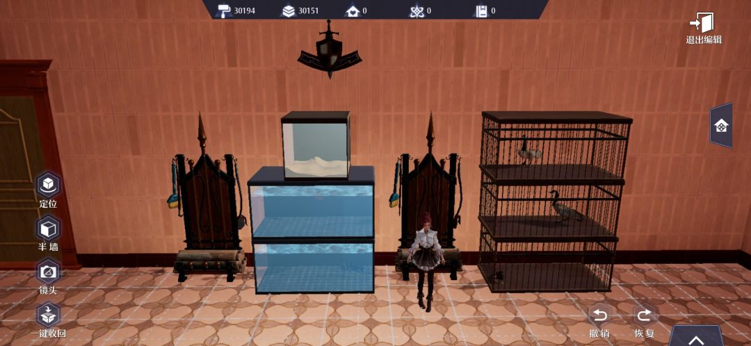 家具及装修搭配推荐:鱼缸·鳗鱼、鱼缸·小丑鱼、鱼缸·四间雀鱼、鸟笼·大雁、鸟笼·鹰、虫箱·蜥蜴、盾徽、燃木架等进行搭配,地板可以使用天空之城、冰川精灵等明亮色系的进行搭配。