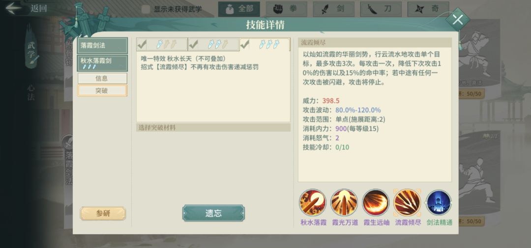 乙疾风迅雷剑,天风剑法(白色)进阶,需要1突,功能:辅助可以通过身法突破集气上限达到2.5集气(40时序一动)。