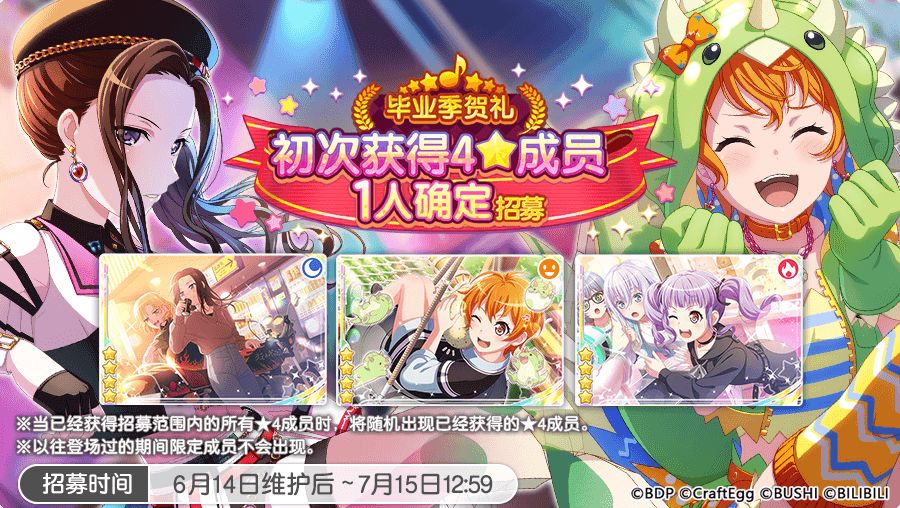 5. 毕业季贺礼Dream Festival招募限定成员也会在今后仍会在「Dream Festival招募」中登场,但出现概率不同。
