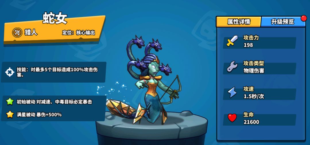 优先培养蛇女和骨弓,蛇女对减速和眩晕目标必出暴击,满星蛇女加五倍暴击伤害。骨弓有破防属性,触发被动有大幅攻击加成。冰弓有减速又加攻击,绿弓加攻速。海妖加魔抗又打控制。