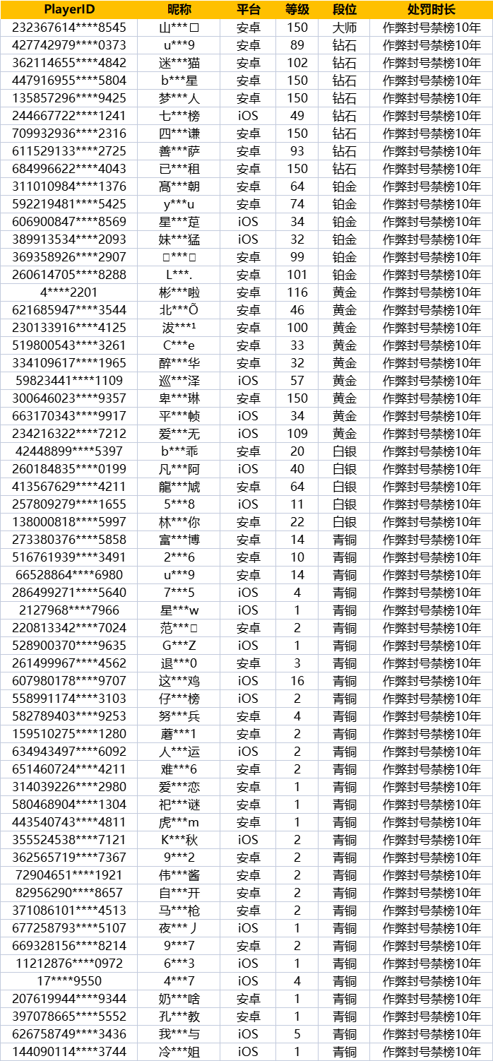 运营团队对外挂采取“零容忍”态度,只要发现作弊一定严惩,并且不接受任何渠道的解封申请(包括心悦会员等)。对违规战士除了封号处罚外,还会定期公示部分典型账号,同时游戏官方运营团队也会持续优化游戏举报系统及反馈系统,欢迎战士们通过游戏内外各反馈渠道积极举报、投诉。绿色游戏环境,需要与战士共同守护,请各位战士享受游戏乐趣同时恪守规则。