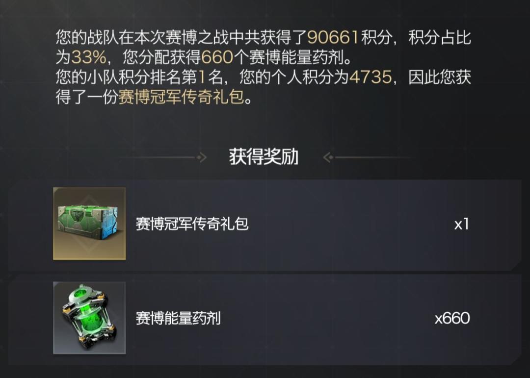 持续控制赛博之战战场建筑时,派出50000及以上部队才能获得100%个人积分,少于50000时将会随着数量的减少而减慢积分获取速度。