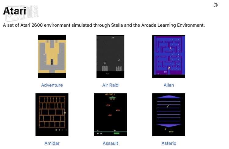 公开发布的Gymdocumentation调试工具箱,内置了大量雅达利小游戏