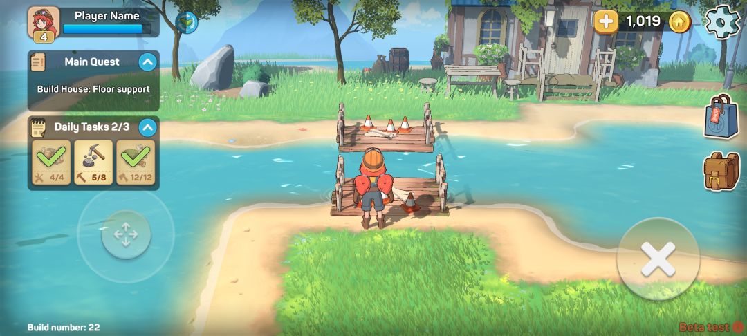 玩到后面材料不够继续不了了,缺一个工具箱,房子修了一半,我看河边有三个断桥以为可以过去于是把所有树木杂草之类的互动点都弄干净之后发现还是不能修桥,对面明明就做好了……