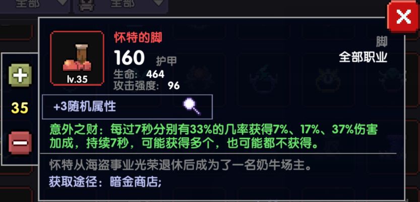 5.怀特的脚:每过7s分别有33%几率获得7%、17%、37%伤害加成,持续7s,可能获得多个,也可能都不获得。