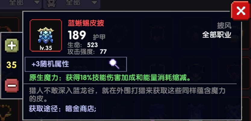 4.蓝蜥蜴皮披:获得18技能伤害加成和能量消耗缩减。