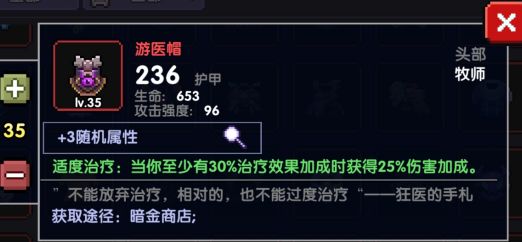 1.游医帽:当你至少有30%治疗效果加成时获得25%伤害加成。