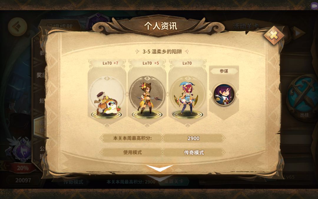 思路:没有三魂自带灵巧角色也没有黯月sp,用丽莎白2上灵巧,吃场地效果规避伤害,冰弓被动配合月宝箱转块,粉泉输出。