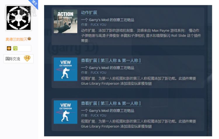 同一作者此前制作过几个衍生MOD,评分与订阅量都很高,功能包括但不限于添加人物动作、解锁视角、遮蔽环境光等等。这些衍生MOD也要依赖GlueLibrary运行,结果也没能幸免,通通遭到篡改。
