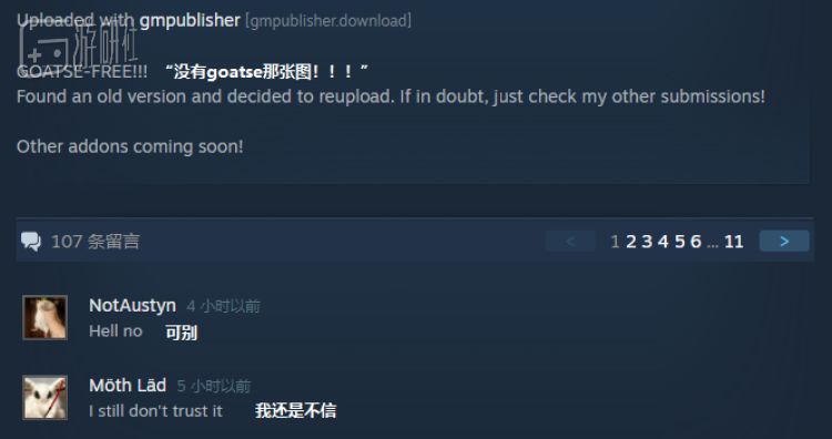 即便有人上传了“无污染”“没有猎奇图片”的旧版GlueLibrary及系列MOD,仍不乏心有余悸的玩家们提出质疑,面对订阅按钮踌躇不定。