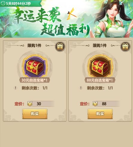 6月10日-6月16日活动期间,玩家可以在盛夏商城购买两种礼包:30元自选周礼包、88元自选周礼包。