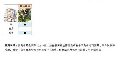 A:部分角色暂时没有完全对应的分享角,没有最优解,或者说全是最优解另外由于P化灵晶全都是增幅攻击为目的,所以也只列出了各种武器下的主要攻击手,辅助角色并没列出。