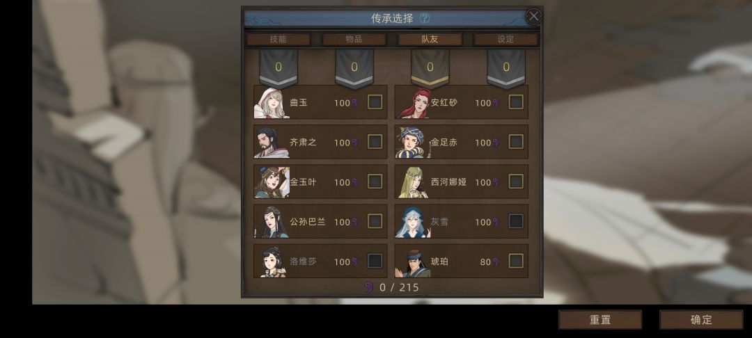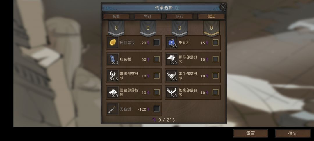 然后就是传承点数可以兑换的东西了,主要就是技能,NPC,设定,物品这四类