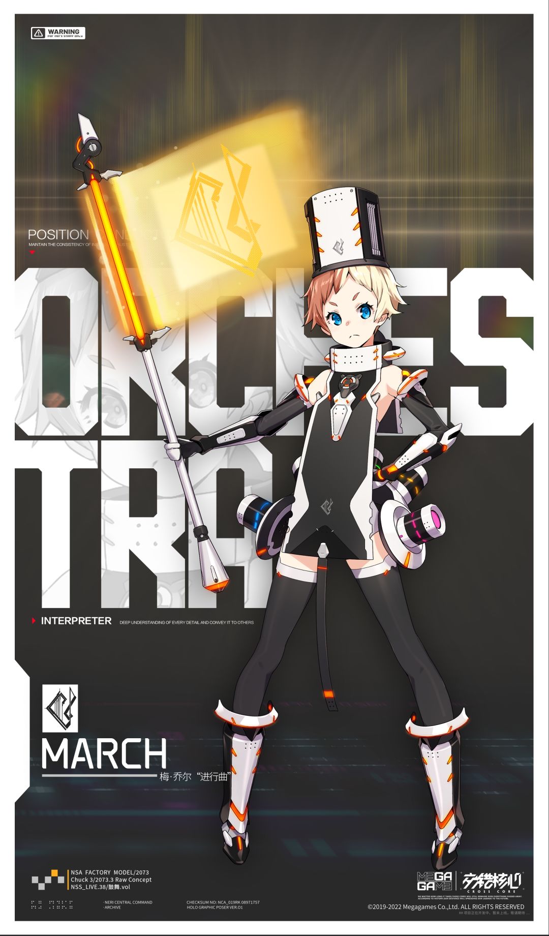 进行曲,曾隶属于U·E·D·F军乐团,后向军方提出申请,参加入选为探索队成员。作为前军队成员的进行曲身上几乎有着作为一名优秀士兵所需的全部品质--严于律己、绝对理性、团结勇敢……