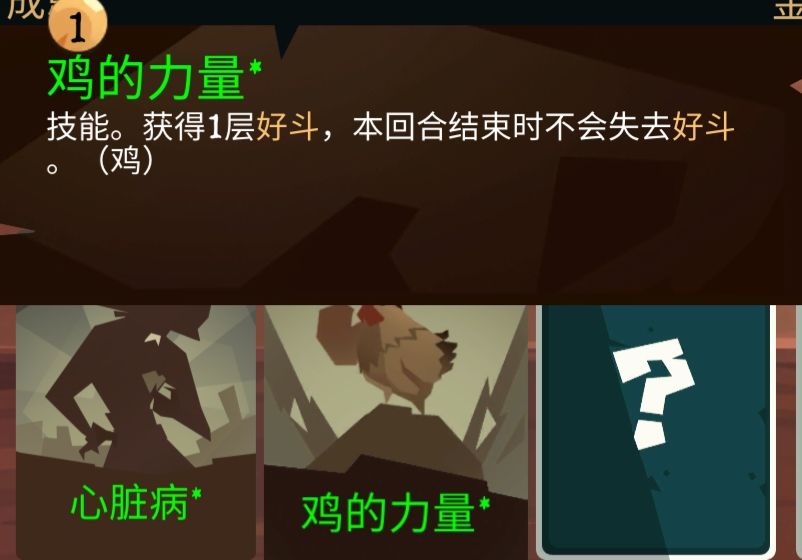 被攻击获得好斗,好斗越高攻击越高还能吸血,回合结束好斗消失(唯一缺点),任务奖励鸡的力量是神卡,但是任务难度不小(相对而言)