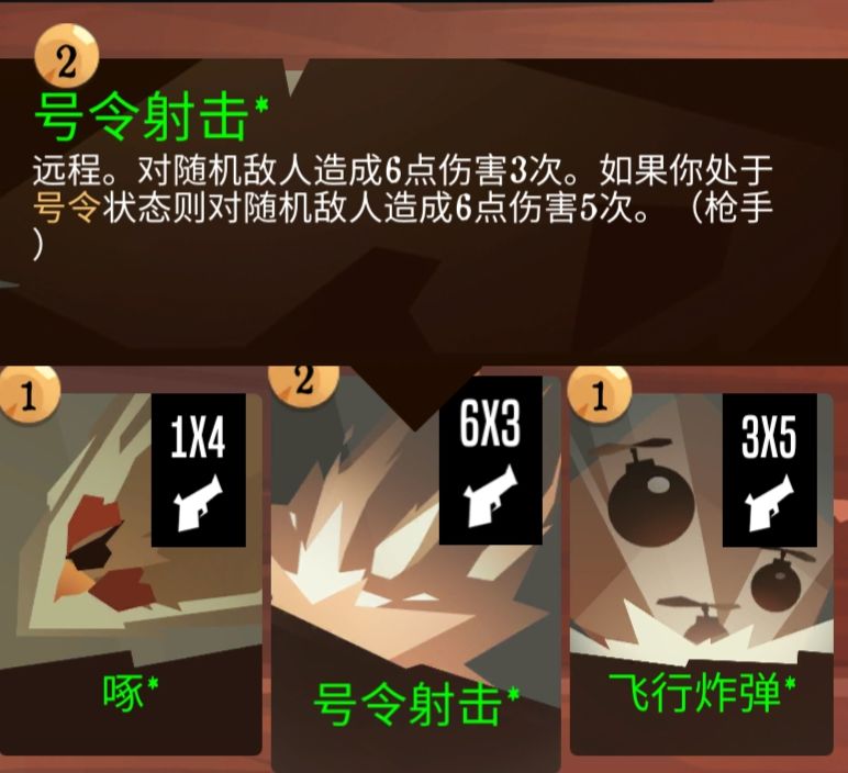 枪手的玩法很简单,升级 号令 然后拿多段远程攻击卡(几x几需要消耗弹药的基本就是),用了号令就用多段(暴击伤害翻倍)