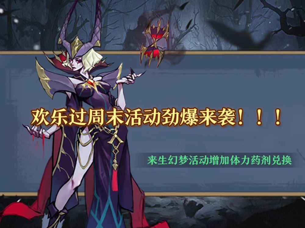 亲爱的探求者感谢大家对旧日传说的支持与厚爱,壹番游戏6月6日开服以来我们感受到了大家对旧日传说的热爱,周末马上就要来到,这是一个开心玩游戏的时间怎能没有体力呢。经过小盾的不断努力周六周日两天为每位探求者每天赠送30点体力。同时来生幻梦活动增加体力药剂兑换。总计可兑换30个30点体力药剂(每300个大理石块兑换30点体力药剂)。