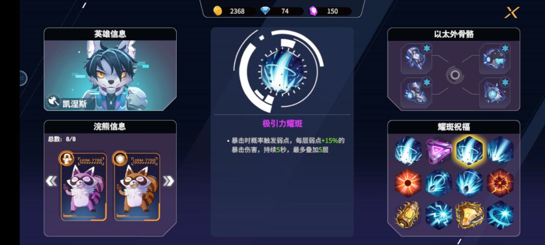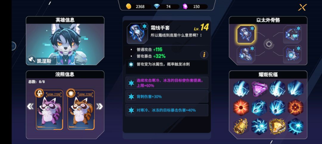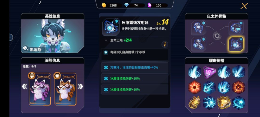 首次通关 冰刀+双浣熊(盾+吸)特效,祝福主要是血量相关的(包括吸血,有一个暴击加血的祝福很好用)和伤害百分百加成😎