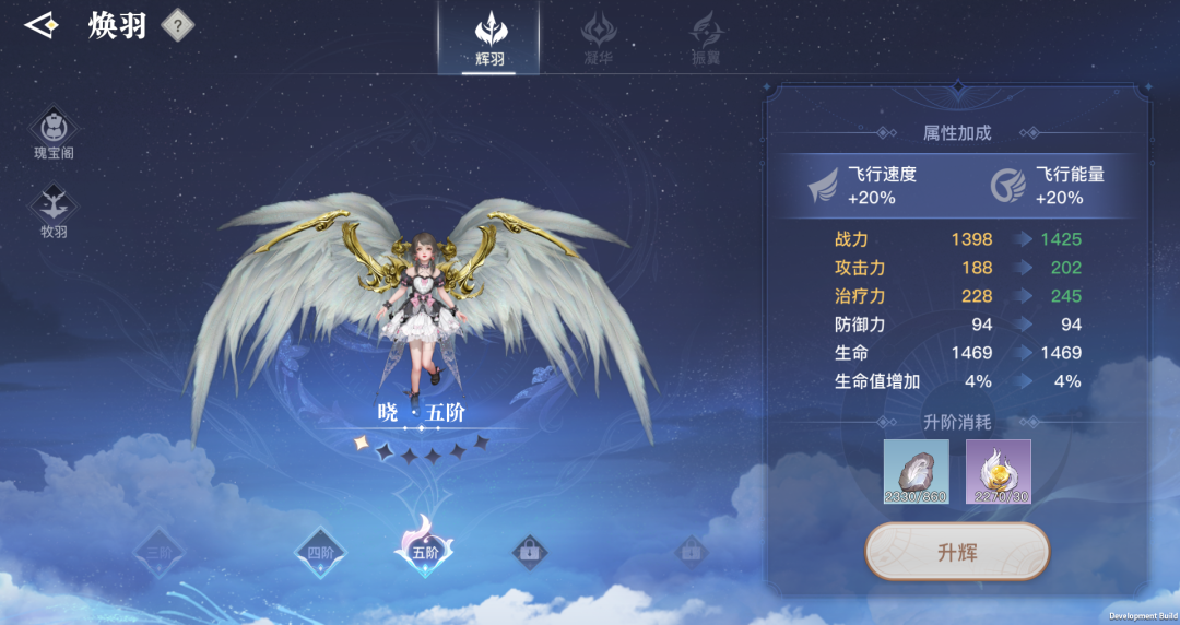 但除了“晓翼”系列翅膀外,其他翅膀不参与“焕羽”进化,也不会有外观的变化和额外的战力加成。