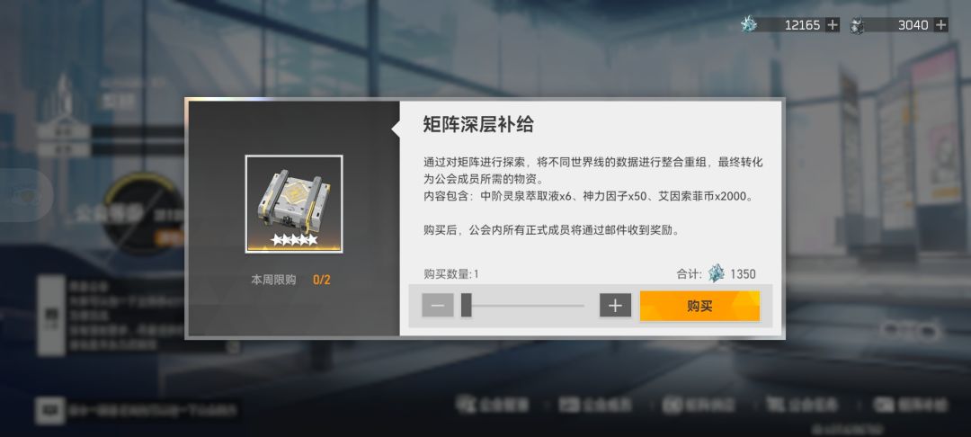 2矩阵常规补给(推荐先开这个,因为是永久性的,每天一次)ps(需要两万四才可以开启 ,开启以后可以买矩阵深层补给)