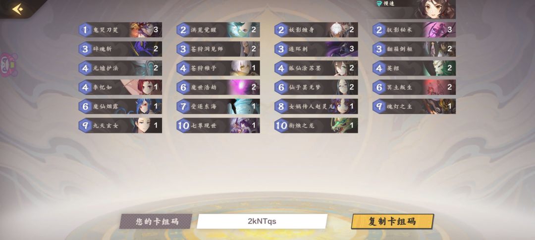 说实话这个版本其实不太适合慢风,主要还是套路太多,防不胜防。为了跟大多数套路对线,于是就组出来一套怪模怪样的慢风(其实不需要用脑子组,把解牌和奶牌带满就行)。