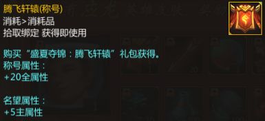 与此同时,还能获得一个换装同名称号—腾飞轩辕,能够为大家带来不错的属性加成哦~