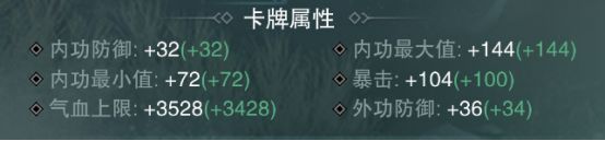 这时候就要考虑到交契、风物、势力的因素了,因为剩下的都是只有暴击或只有内功的卡