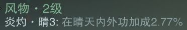 同时进境值级数越高,属性越好,比如同为晴炎3,三级风物的晴炎2会比二级风物的晴炎3增加的伤害高