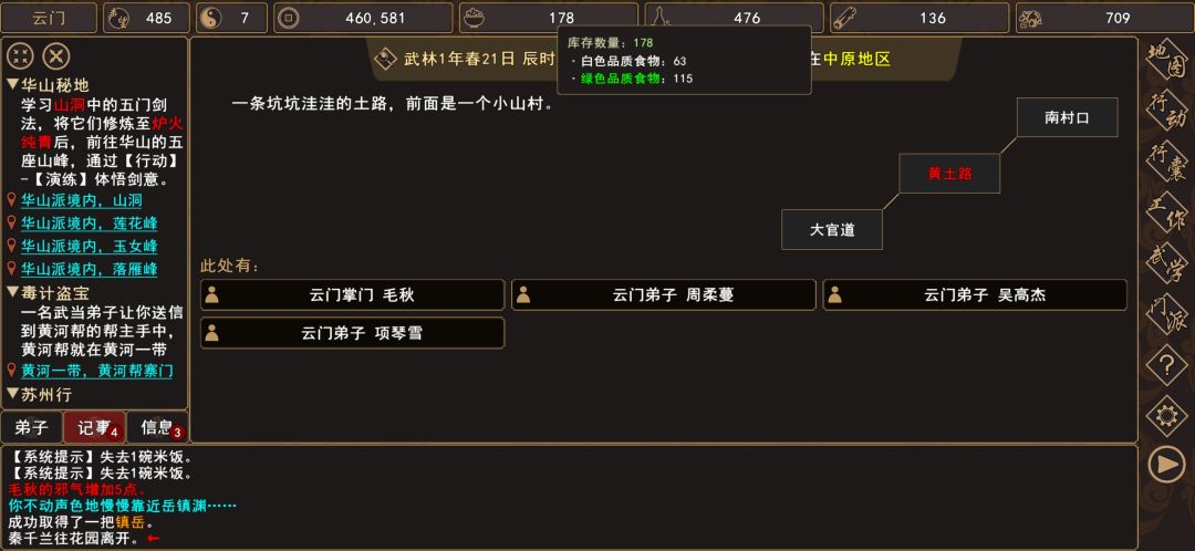 好感度到一定程度(不知道多少,我刷满了)就会触发思过崖闹鬼任务,完成之后到山洞推开就会发现石壁上记载了5个剑法,到达炉火纯青程度就可以去各个峰体会,都是紫色剑法,不亏!