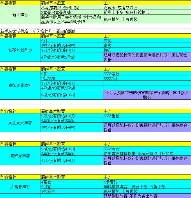 新手推荐阵容