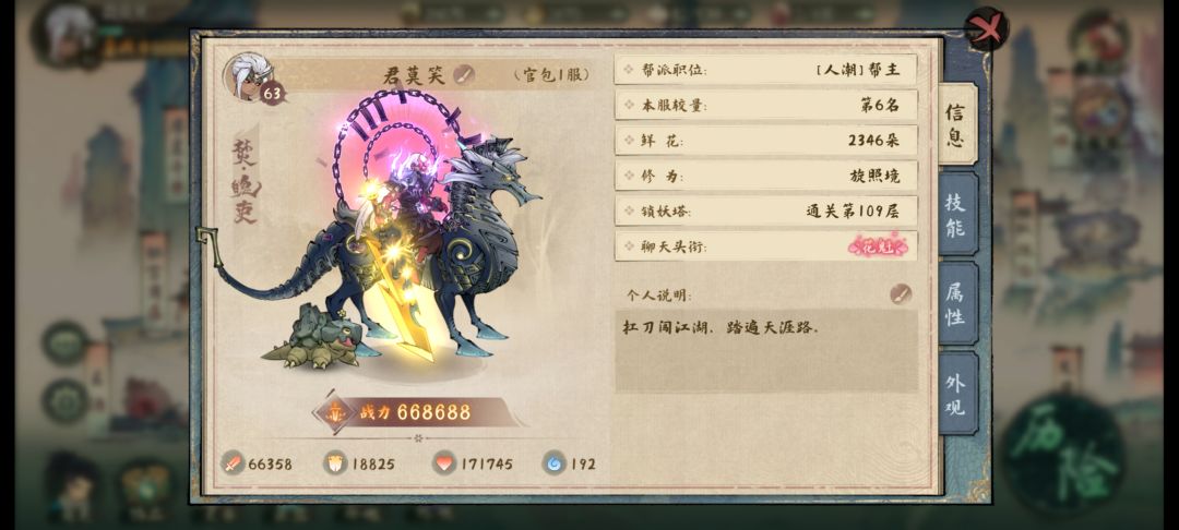 最后和大家分享下个人的灵兽技能搭配和手法