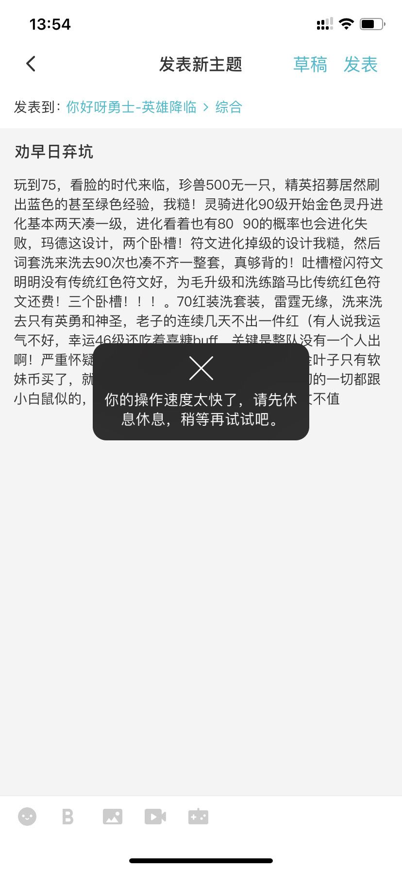 玩到75,看脸的时代来临,珍兽500无一只,精英招募居然刷出蓝色的甚至绿色经验,我糙!灵骑进化90级开始金色灵丹进化基本两天凑一级,进化看着也有80 90的概率也会进化失败,玛德这设计,两个卧槽!符文进化掉级的设计我糙,然后词套洗来洗去90次也凑不齐一整套,真够背的!吐槽橙闪符文明明没有传统红色符文好,为毛升级和洗练踏马比传统红色符文还费!三个卧槽!!!。70红装洗套装,雷霆无缘,洗来洗去只有英勇和神圣,老子的连续几天不出一件红(有人说我运气不好,幸运46级还吃着喜糖buff,关键是整队没有一个人出啊!严重怀疑官方暗改装备爆率)最后洗装备的金叶子只有软妹币买了,就这还洗不出来,四个卧槽!!!一切的一切都跟小白鼠似的,没劲!奉劝各位别再砸钱,账号一文不值
