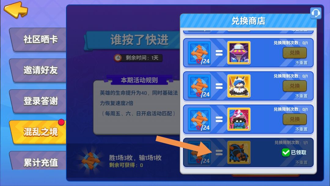 混乱之境24个牌子兑换的奖励是什么,领完了怎么找不到在哪?
