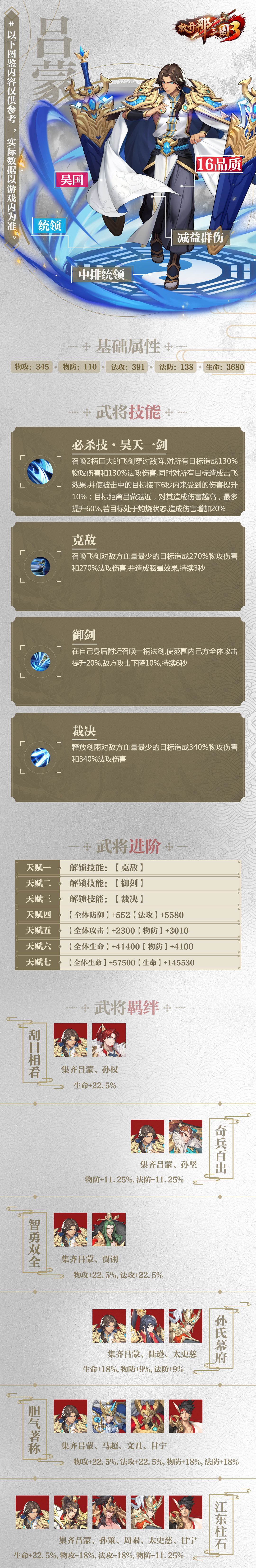 武将图鉴☆《放开那三国3》吴国「吕蒙」技能属性羁绊介绍