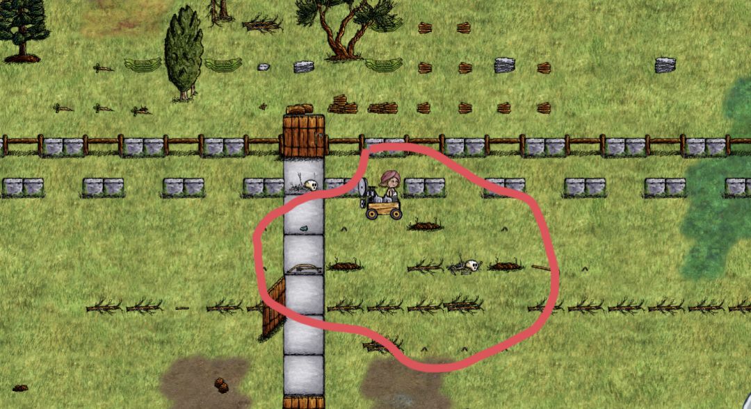 我打算去搬扁石的时候看到我家下面有两个尸骨,他在外面放满东西 在我画圈的地方,我上面当时就是很一大块空地,应该想要卡进去,所以我推测出他应该把百合标放在我站的位置的上面