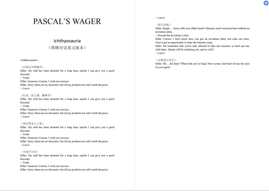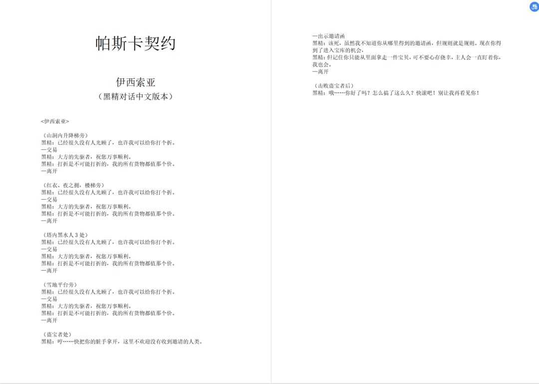 【雨夜】伊西索亚黑精对话中英文版