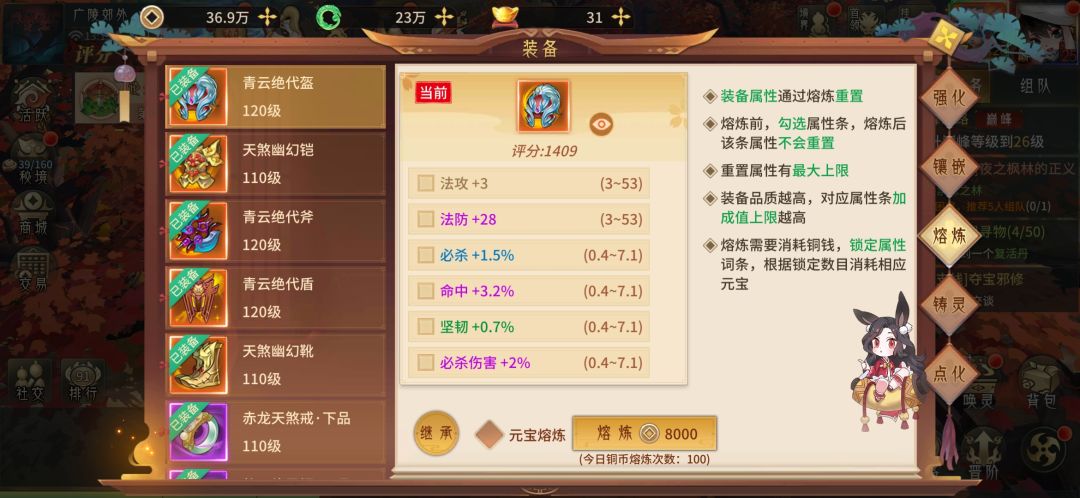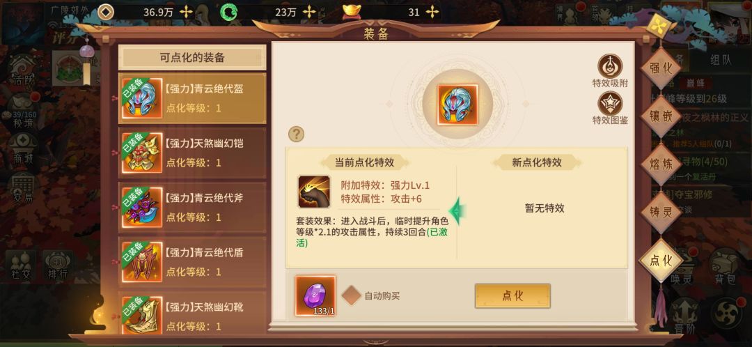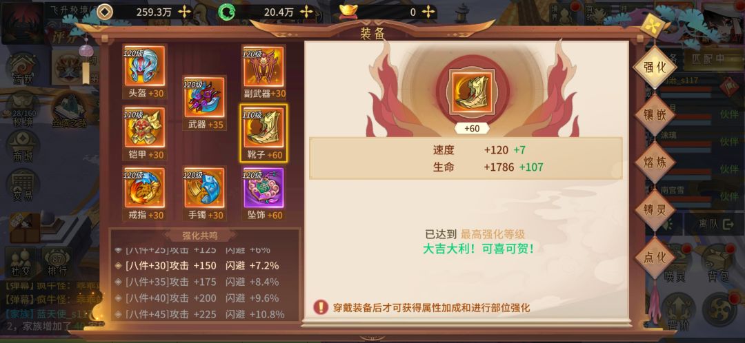 装备等级慢慢每天刷一下,60级就满级了,宝石也是慢慢白嫖,熔炼差不多就行了,白嫖玩不了太好的,太费铜币了,铸灵可以用玉升上去,玉每天可以卖装备做任务拿,点化也是通过每日任务每天白嫖一点点。最重要的就是造化装备了,要找大佬带你打副本 这个没办法白嫖了🙄 看你关系了,神化装备的材料也是要靠大佬了,打boss可以掉。