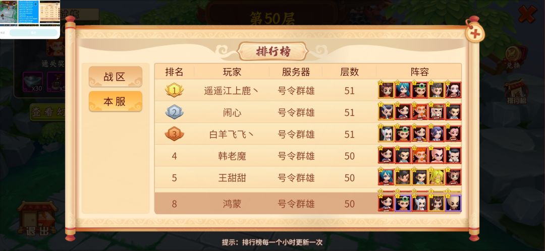 抽完侠客令,紧接着培养一波,又刷了五十层试练塔