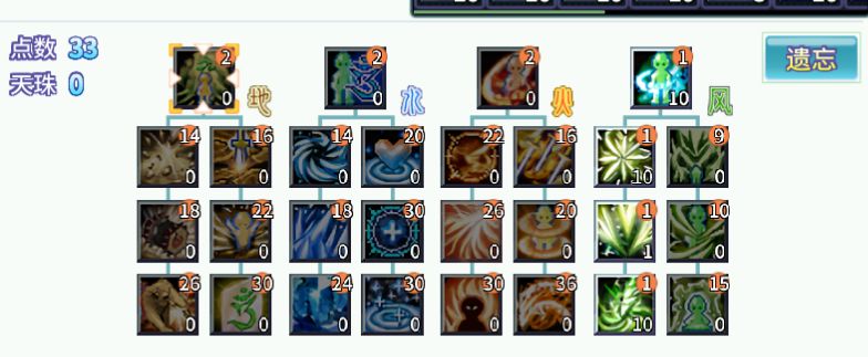 首先,技能属性,分为风,火,地,水。