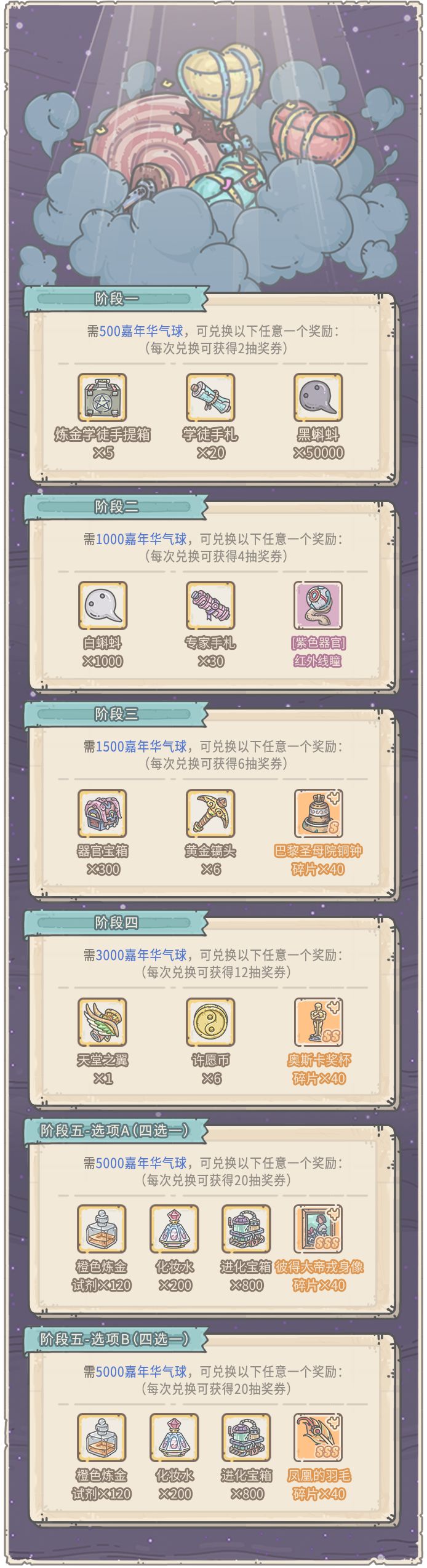 1、活动期间,可消耗活动货币“嘉年华气球”,兑换奖励