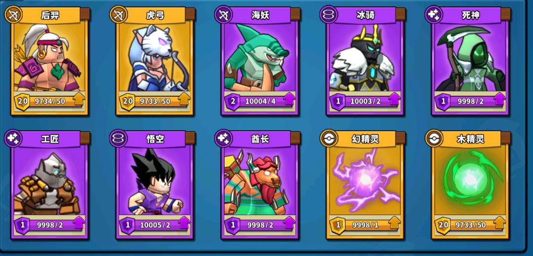 B组6卡成型:后羿、虎弓、海妖、冰骑、死神、工匠(酋长)---除了工匠(酋长)其他全满